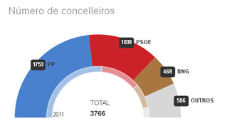El PPdeG valora los resultados de la elecciones municipales del 24 de mayo que implican una pérdida de votos y de representantes en numerosos municipios de Galicia. La situación del PPdeG es más complicada, sobre todo, en ciudades como A Coruña y Santiago de Compostela donde el efecto de las Mareas les arrebatan los gobiernos de dos ciudades en las que confiaban ser las listas más votadas. También pierden los gobiernos de las Diputaciones provinciales de A Coruña y Pontevedra. En el PPdeG se hace "autocrítica", se "asumen los errores" y se achaca el fracaso a la crisis. -
