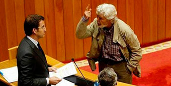 El portavoz de Alternativa Galega de Esquerda (AGE), Xosé Manuel Beiras, se ha encarado y golpeado con el puño el escaño del presidente de la Xunta, Alberto Núñez Feijóo, durante en una sesión de control bronca a cargo de las fotografías, realizadas a mediados de los 90, en las que el mandatario gallego aparece en un yate con el contrabandista Marcial Dorado, posteriormente condenado por narcotráfico. Los partidos con representación parlamentaria critican las actitudes y salidas de tono en la Cámara.