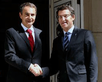 El presidente del Gobierno, José Luis Rodríguez Zapatero, y el presidente de la Xunta de Galicia; Alberto Núñez Feijóo, han acordado en su primera reunión en la Moncloa alcanzar un pacto por escrito que concrete los plazos y presupuestos para la llegada del tren de alta velocidad a la comunidad, así como un protocolo de seguimiento de las infraestructuras. Según Feijoo, Zapatero ha admitido incumplimientos en la Alta Velocidad en los últimos 5 años y se ha comprometido a suscribir un acuerdo institucional.